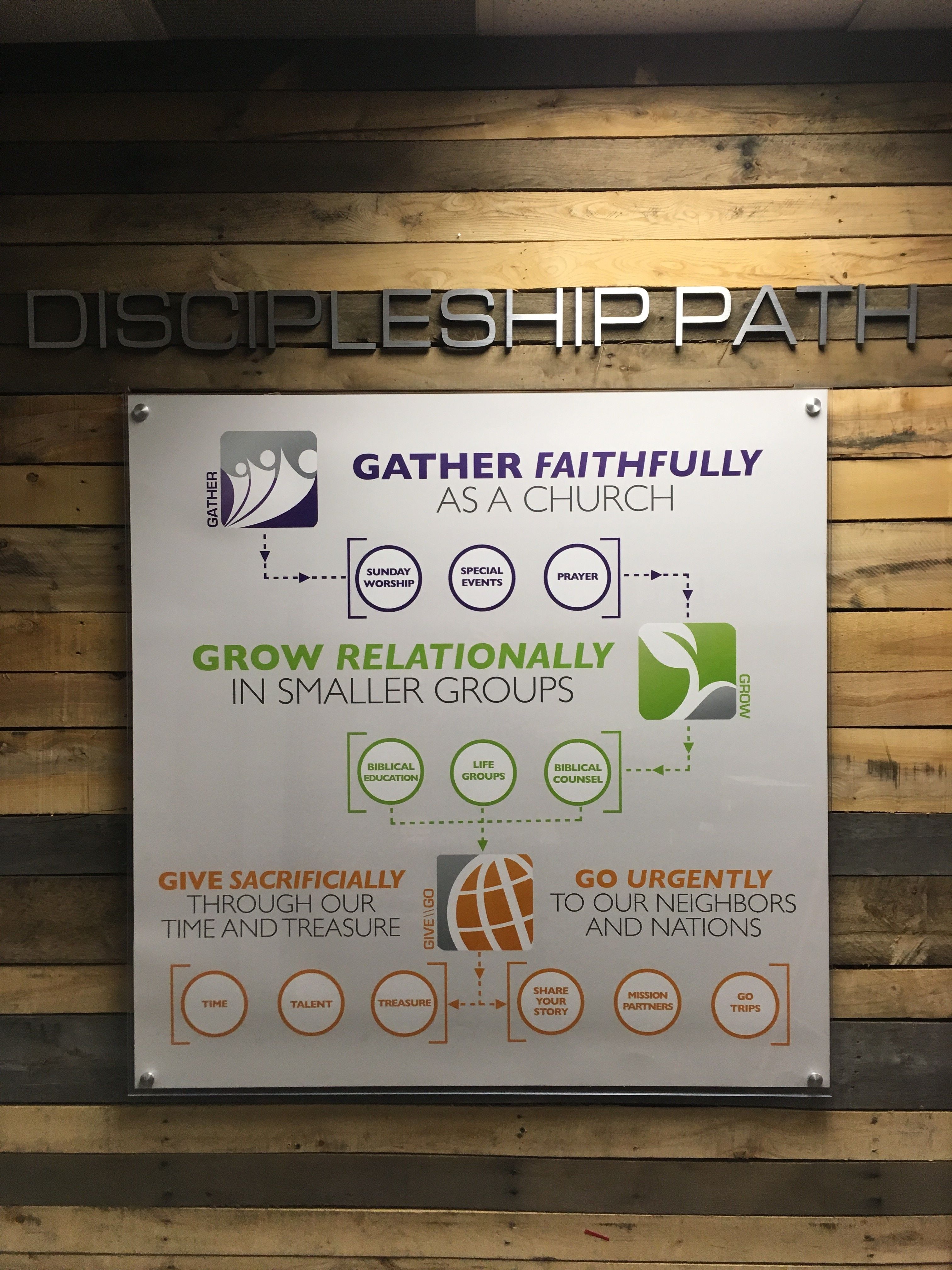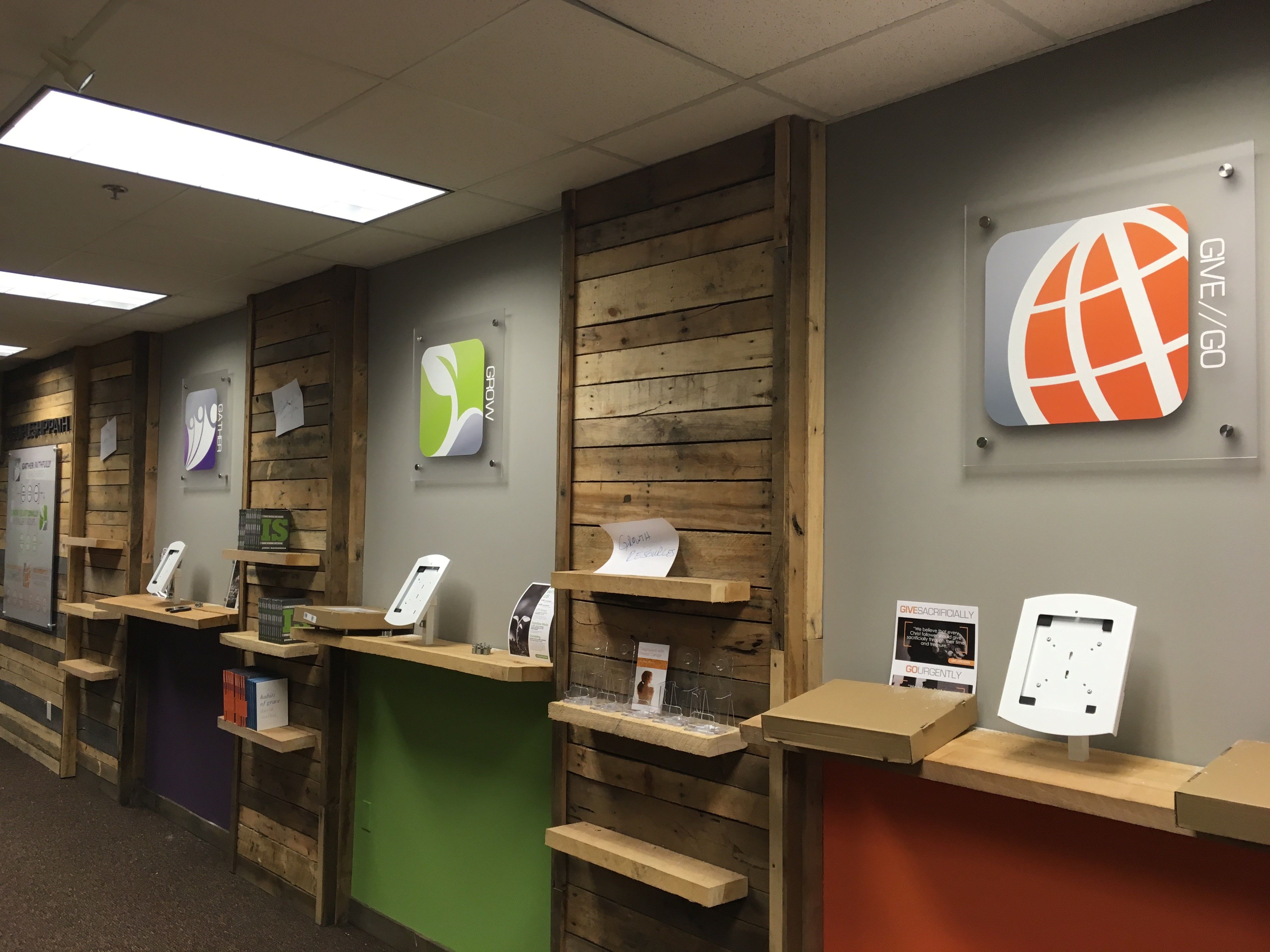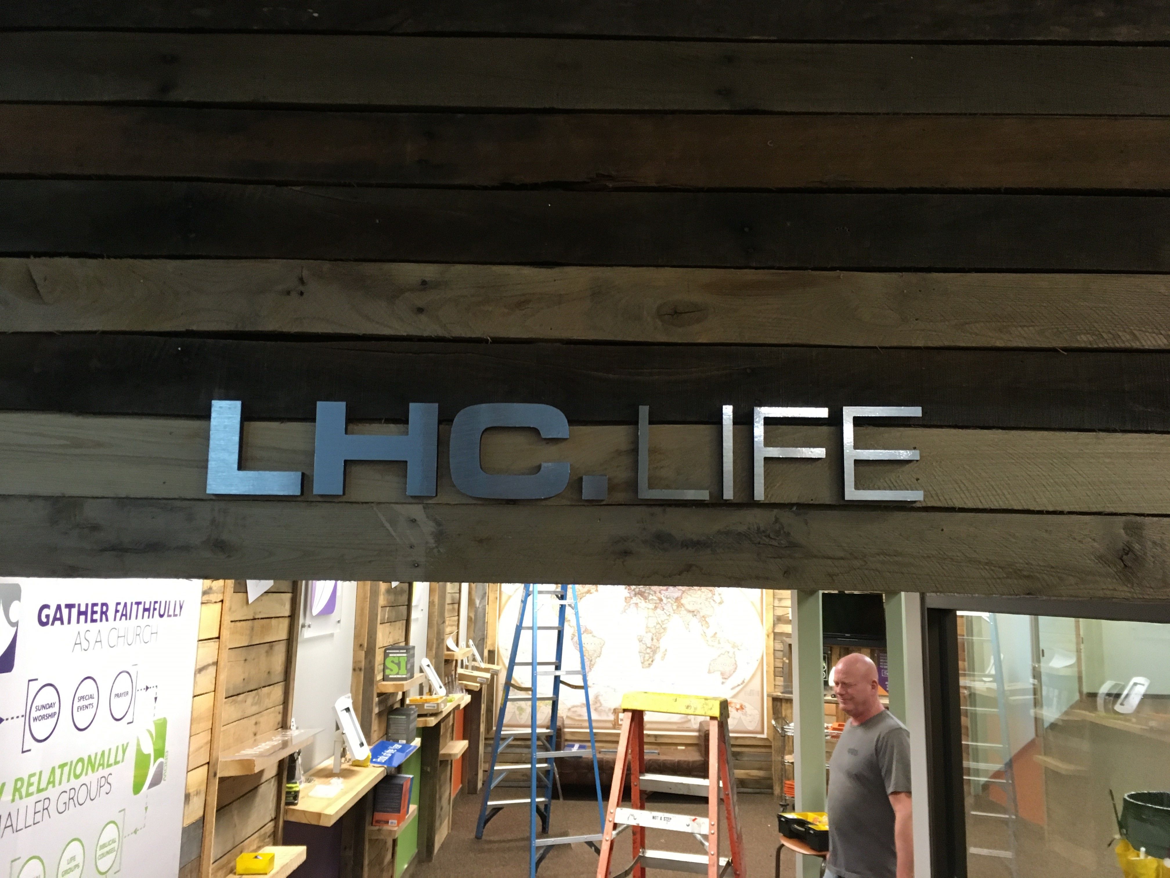 Using a combination of acrylic, brushed silver vinyl, printed vinyl, and poly-metal we were able to brighten up Liberty Heights Church’s displays. We worked closely with the church to bring their vision to life. The brushed silver and wood pallets aesthetic is on the rise with many offices. Treble One is another company that has the same look, you can see them further down our list of recent projects. This aesthetic seems to be a growing trend that you will start to see more and more.