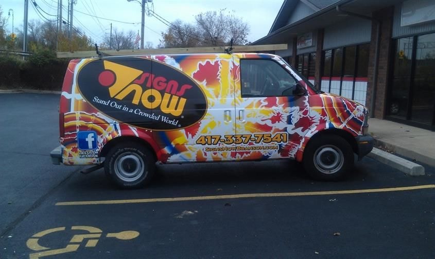 Don’t want to be caught in the rear view? Customized vehicle wraps from Signs Now Branson will keep you miles ahead of the competition! Vehicle wrapping is one of the fastest growing mediums in advertising and will give you an outstanding return on investment, compared to other media. Virtually every American travels in a vehicle each week as either a driver or a passenger - so your odds of being noticed as a moving billboard are very good, especially with quality graphics on vinyl vehicle wraps. At Signs Now Branson, our team of highly trained professionals will work with you to determine the best and most cost-effective solution to turn your company vehicle into a high-impact advertisement.