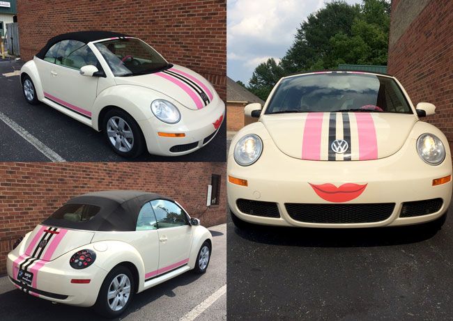 This stock white VW Beetle has been customized to express the customers personality.