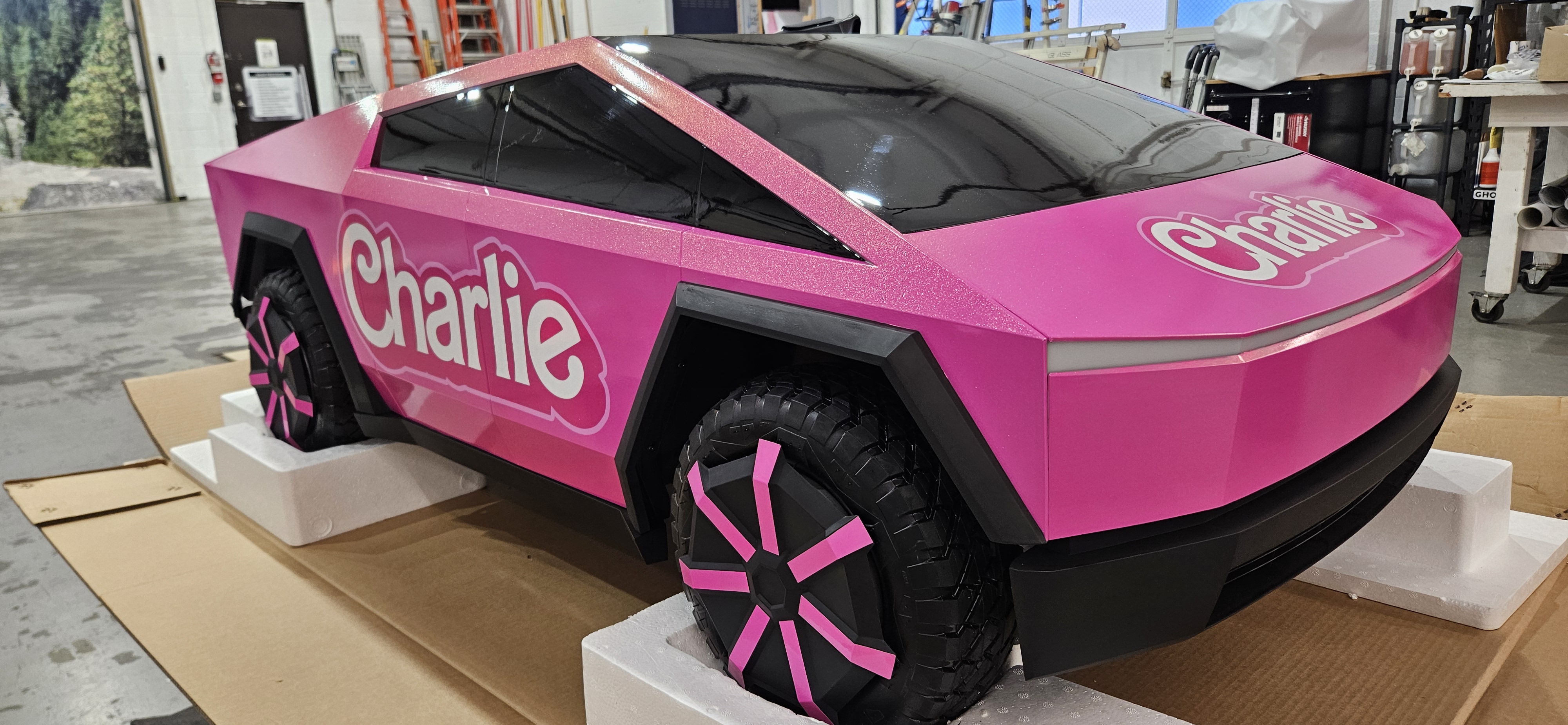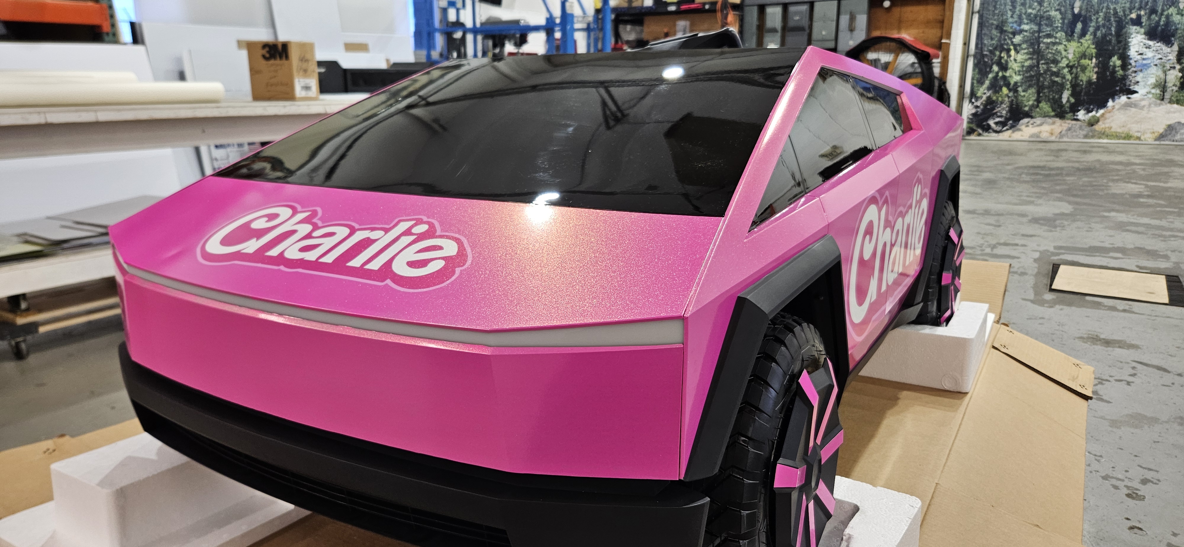 Sparkly Pink Mini Cybertruck Vinyl Wrap