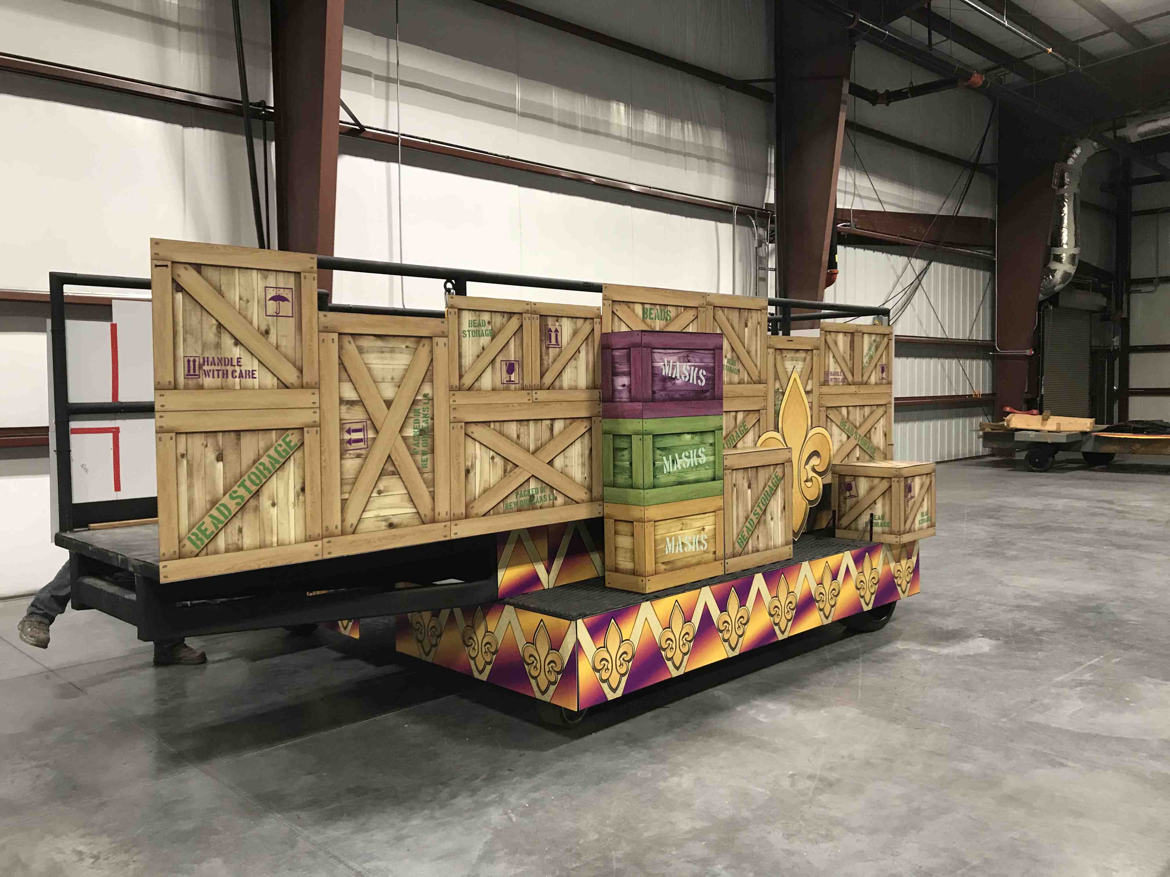 Check out this Universal Studios Mardi Gras float we built! This is an ADA compliant converted scissor lift that was used every day in the US daily parade.