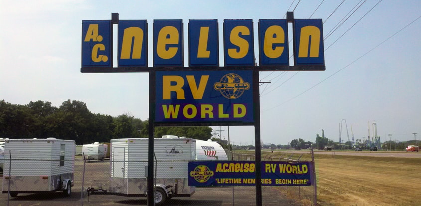 - Twin-pole mount pylon signs – Two poles provide greater rigidity and added strength, but some marketers also prefer the symmetry of a two-pole design.