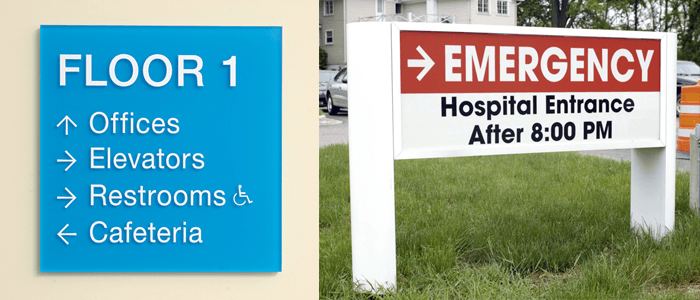 Could you imagine if you walked into a storage room of biohazard chemicals because there was no sign? When a healthcare facility needs to inform visitors, employees and patients on what to do in case of emergencies, where rooms are or what a certain department is, they rely on signs that draw attention and communicate clearly.