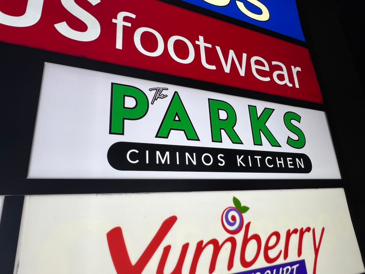 - Custom lightbox pole signs – These resemble monument signs in their robust construction and placement near entrances and exits. They are often used by shopping centers and malls to display the names and logos of businesses.