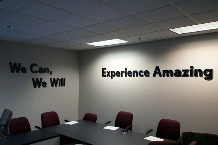- Wall Graphics: Smaller logos, images, graphic designs, taglines or other branding content that can be customized to any space or shape and are ideal for when you simply want to add a small pop of color to an area.