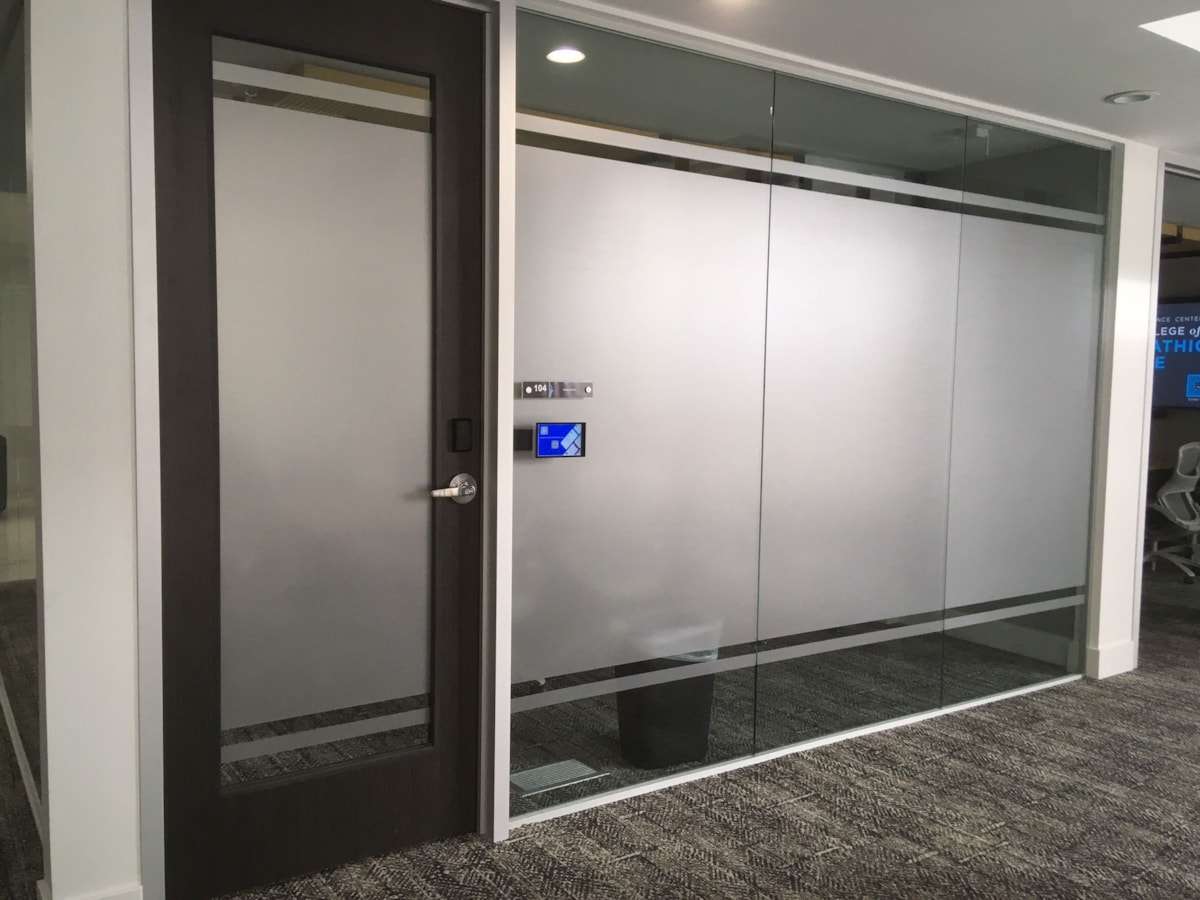 Perforated vinyl decals contain numerous micro punctures, covering around 50% of your overall graphics. As with etched glass, privacy is the primary benefit of choosing perforated vinyl. However, the main difference is that people are still able to see through the glass from the inside, but not vice versa. Perforated vinyl graphics can also display full-color, intricate designs, logos, and promotional messaging.